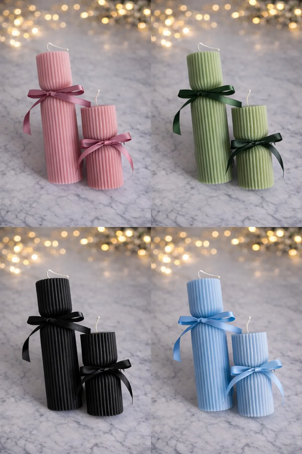 Add a touch of timeless elegance to your space with our Ribbed Elegance Candle Set. Handcrafted with premium coconut soy wax, these sculptural candles feature a modern ribbed design finished with a delicate black satin ribbon for a refined, minimalist look. Perfect as home décor or a thoughtful gift, these candles bring warmth and sophistication to any room. Their unique textured design makes them a beautiful statement piece even before they are lit. Each candle is carefully hand-poured to ensure quality, smooth burning, and a clean finish.